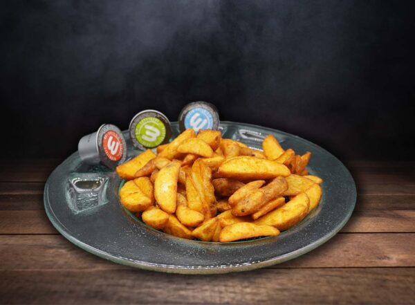 mit Potato Wedges und verschiedenen Dips